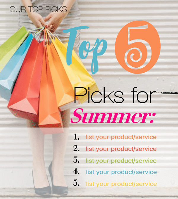 Instead of blatantly promoting products/services, weave information and promotion together into tips and picks that are visually appealing with enticing descriptions.