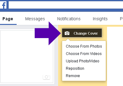 Click on 'Change Cover', or ‘Add a Cover Photo’.