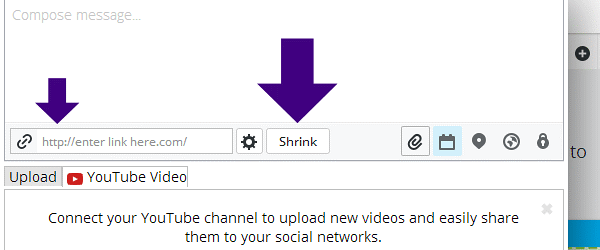 When you include a URL Link with your message/post, when you click ‘Shrink’ your long URL will be shortened: