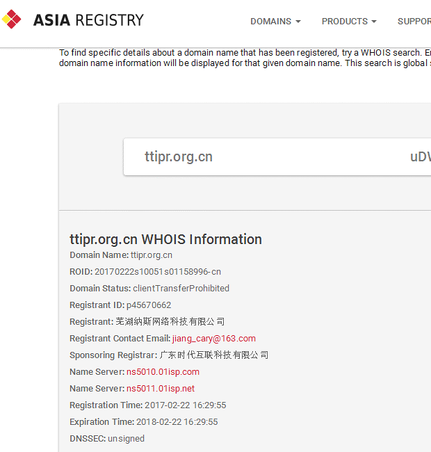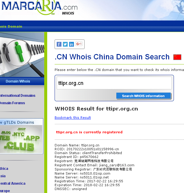 A Domain search was performed on several different whois locations, and these screenshots display the registration information: