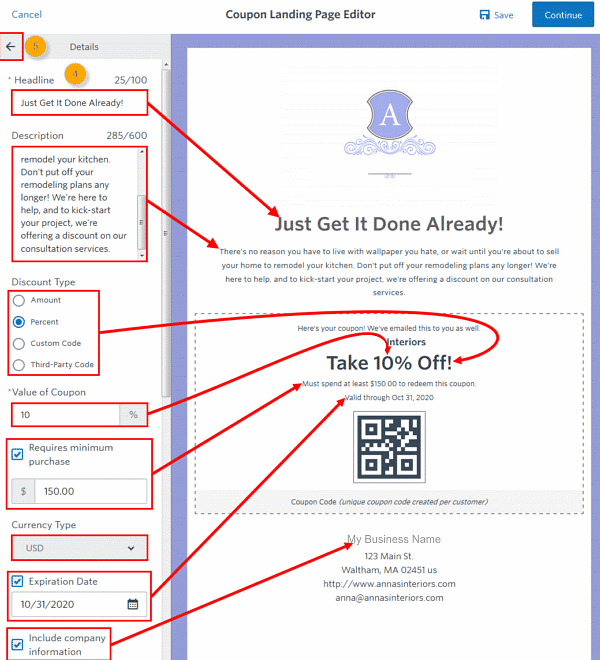 Add and update offer details, redemption instructions, logo, branding, colors, and more.