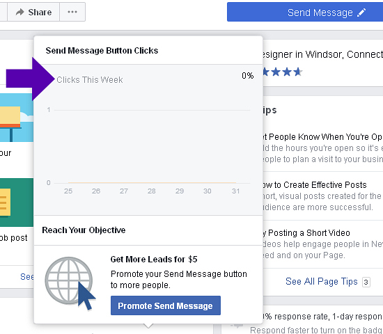 Sign into your Facebook Page to view stats for your Call-To-Action button