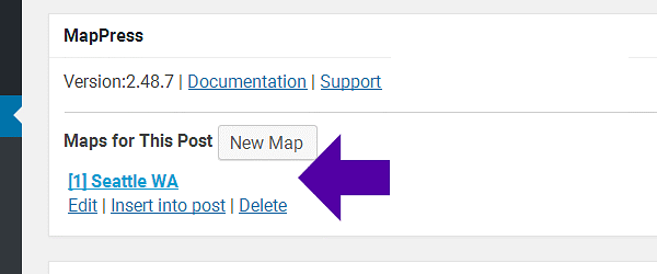 Hover over the map name and Click ‘Insert into Post’:
