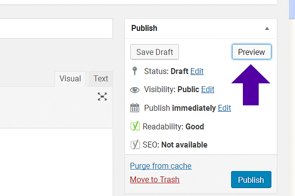 In the upper Right Corner of the WordPress Admin dashboard, locate the ‘Preview’ button.