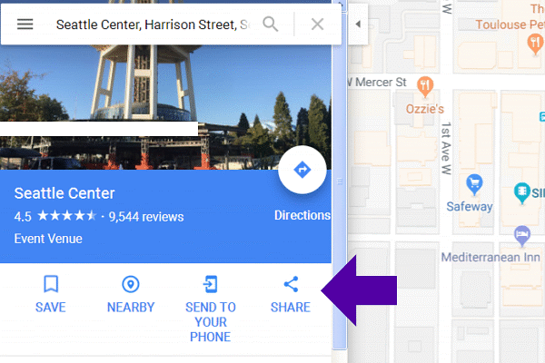 Once you’ve displayed the location of choice, Click on the ‘Share’ button: