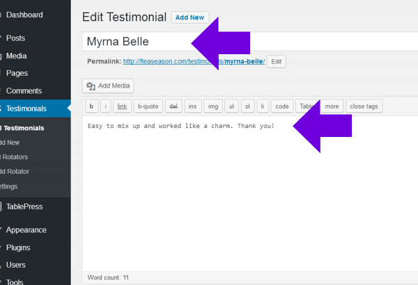 Repeat this process to add more Testimonials to the rotator testimonial carousel.