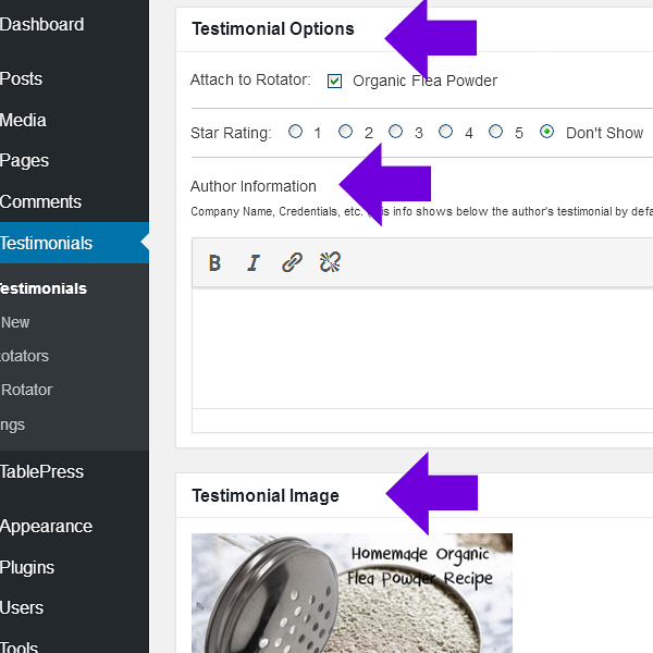 Just open “Testimonials > Add Rotator and repeat the above process.