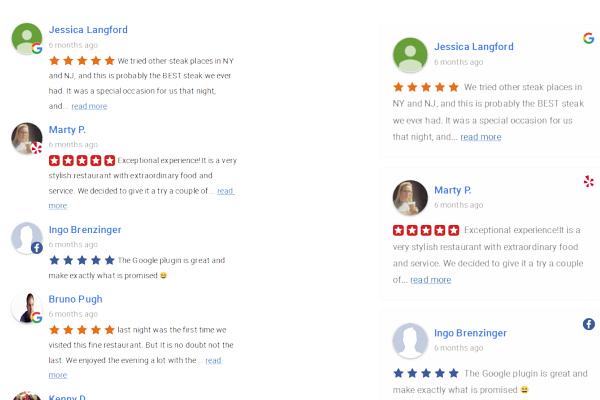 - Show/hide any elements (business, reviews, avatars, names, time and etc).