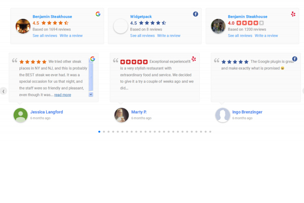 Displays Google My Business reviews on your websites in a sidebar widget. A unique feature of the plugin is that it saves reviews in the WordPress database and doesn’t depend on any other services (like Google) to display reviews in the widget.