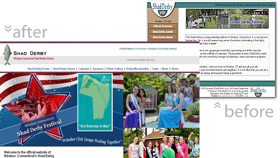 The annual Windsor Shad Derby festival website is getting a facelift. After many years with a stagnant website, Paula Pierce, of Hosting Connecticut, offered to donate services to redesign the website and make it more energetic to illustrate the changes the Shad Derby committee is making to the whole event. The new website launched in mid-January and allows members of the committee to update the content easily without fear of disturbing the rest of the site's elements.